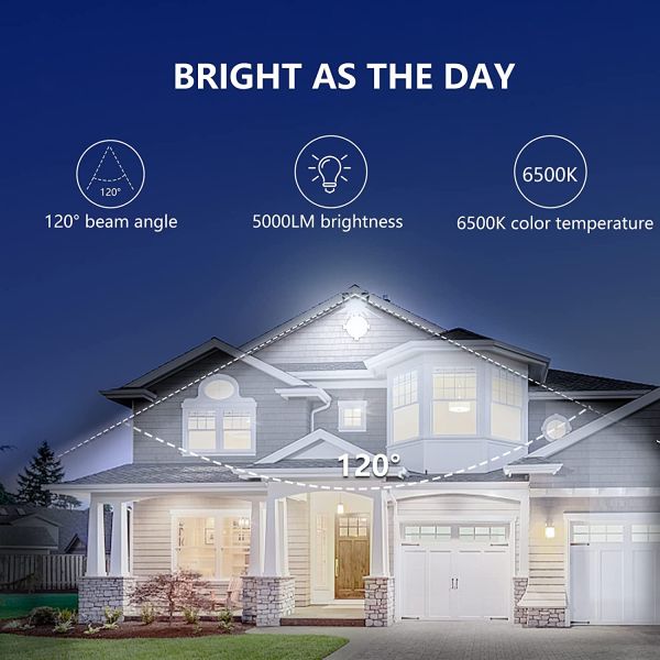 5000 Lumens Waterproof LED Flood Light with Plug Adjustable Lighting Angle Flood Light for Garage Yard Garden